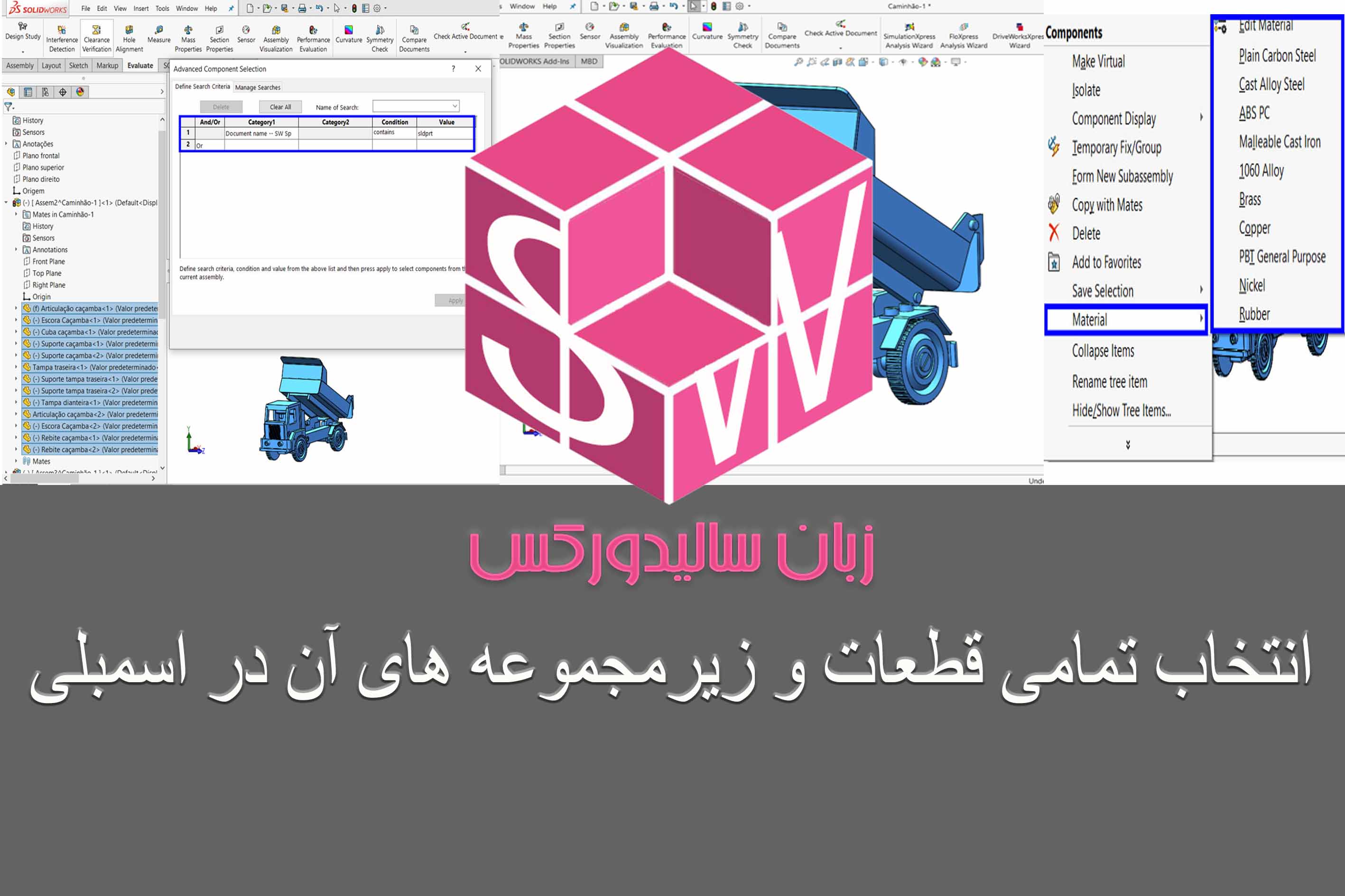 انتخاب تمامی قطعات و زیرمجموعههای آن در اسمبلی
