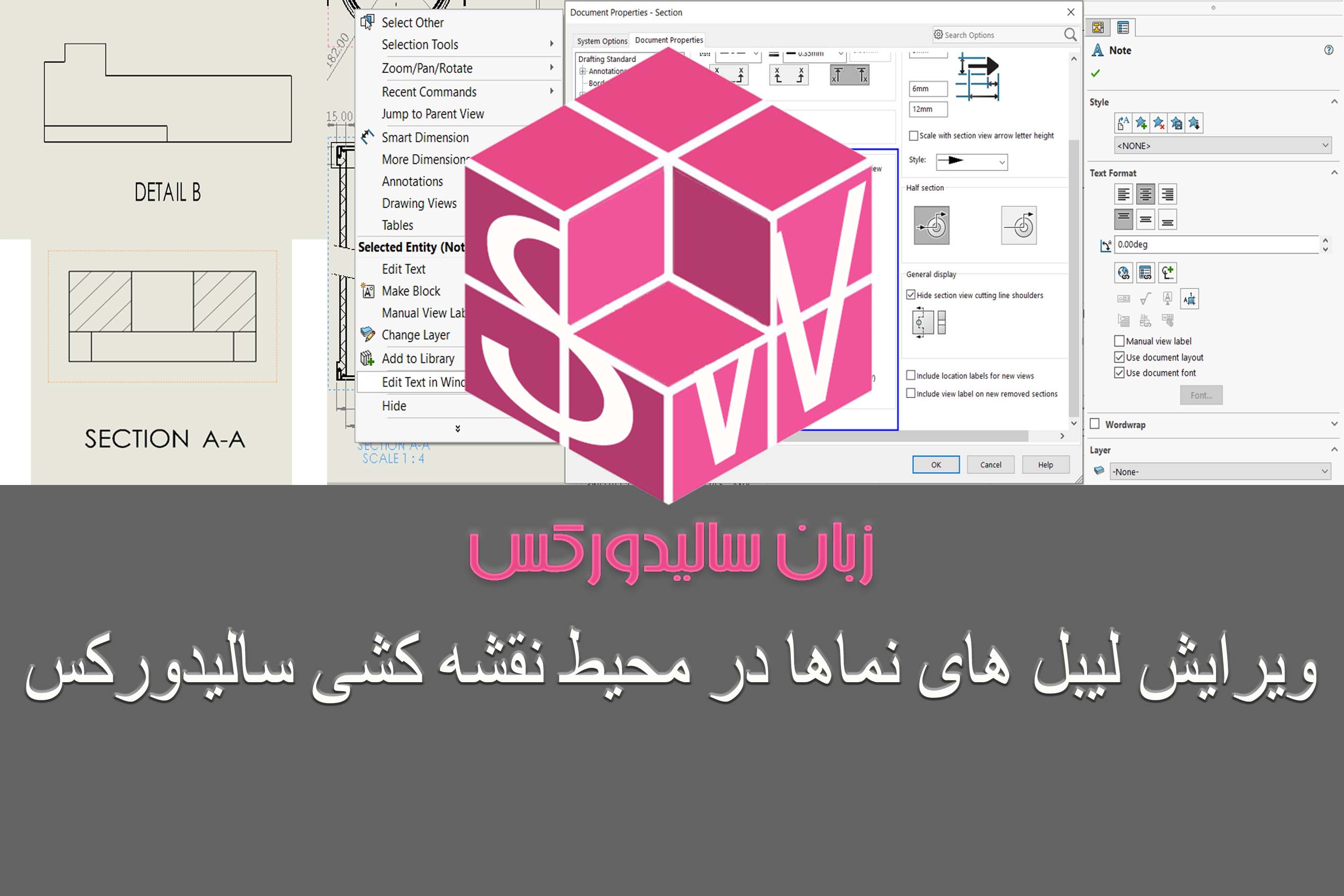 ویرایش لیبل های نماها در محیط نقشه کشی سالیدورکس