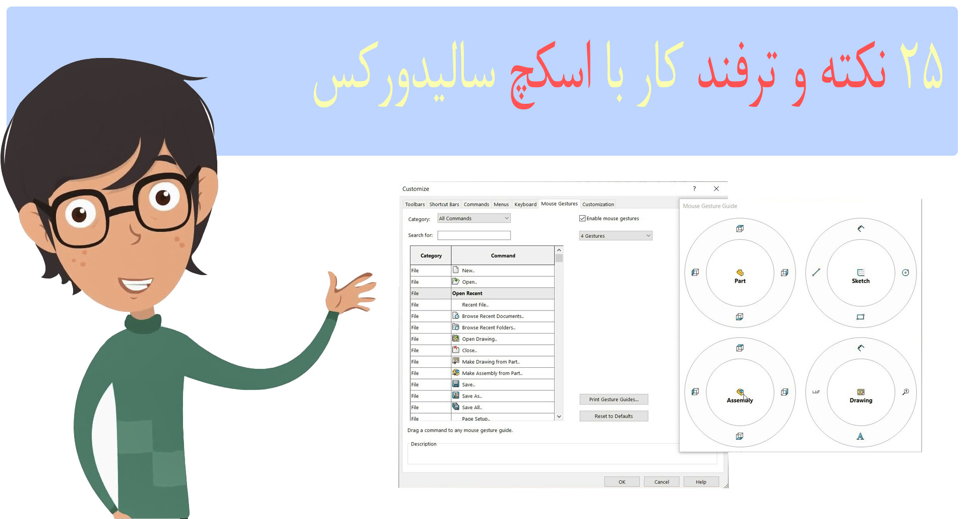 آموزش نحوه ی تنظیم و تغییر حالت های موس در قسمت های مختلف نرم افزار سالیدورکس