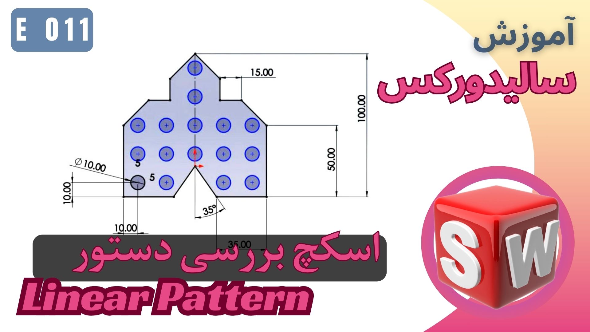 || مدت ویدیو: 05:10 || جلسه یازدهم زبان سالیدورکس آموزش سالیدورک استفاده ازدستور Linear Pattern در محیط اسکچ سالیدورکس