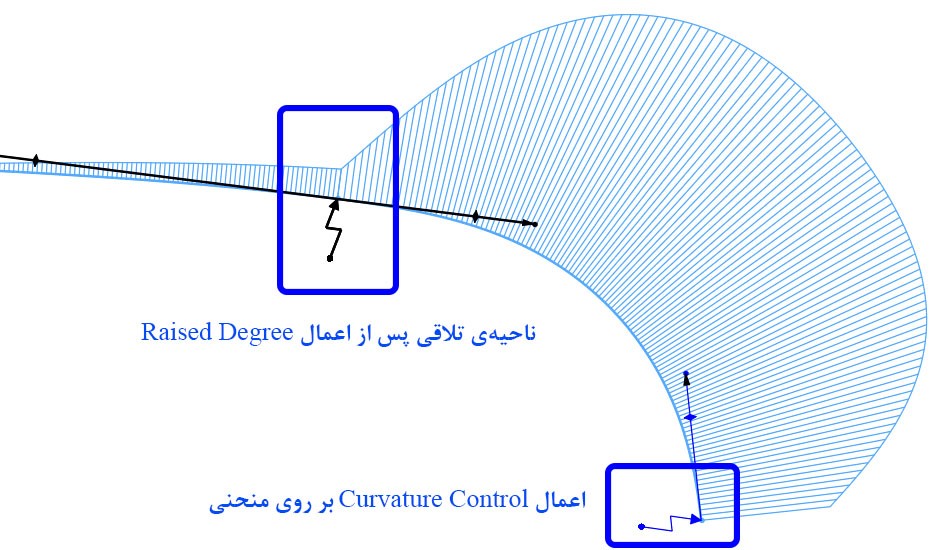 استفاده از Equal curvature در محل اتصال دو Spline و اصلاح ناحیه‌ی گذار